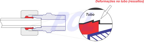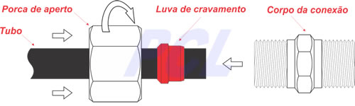 O avanço do corpo da conexão sobre a luva produz o assentamento desta no cônico. A continuidade do aperto terá como consequência o cravamento da luva na superfície externa do tubo; por sua vez o deslocamento do material do tubo resultante do cravamento gera um ressalto na parede do tubo. Este ressalto veda o sistema (metal x metal) possibilitando que o conjunto montado resista a altas pressões, sem escape do tubo.