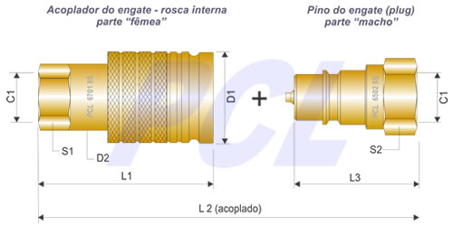 A série PCL 6700 de engates rápidos teve arquitetura construtiva desenvolvida para aplicação em sistemas hidráulicos de tratores agrícolas, apresentando: