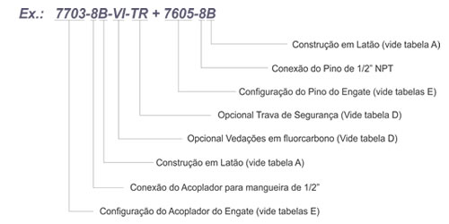 Código Material Engate Construtivo Acabamento Superficial Vedação (Standard para este código) Travas/Molas (Standard para este código) Esferas de Trava (Standard para este código)