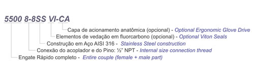 Conexão NPT(interna) Código Acoplador Código Pino Código Engate Completo Máxima Pressão de trabalho (Bar 1)