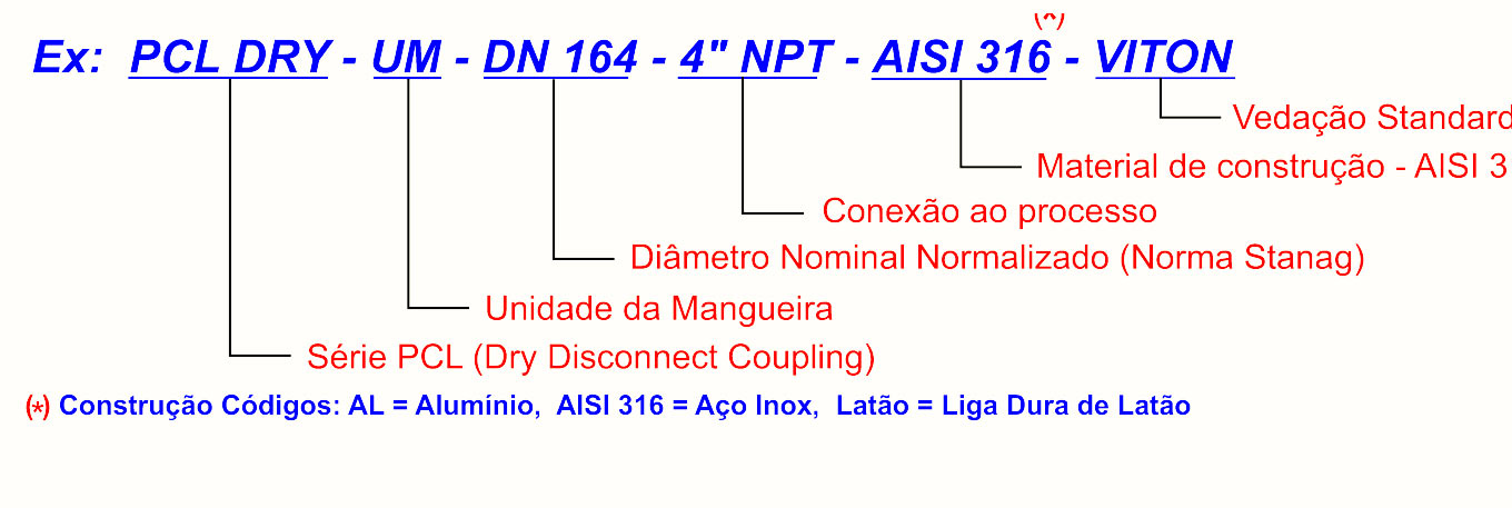 Série PCL DRY UM, Unidade da Mangueira, diâmetro de 164mm, DN 100 atende ao conceito de produto da norma Nato Stanag 3756; proporcionando compatibilidade e total intercambialidade com produtos de outros fabricantes que adotam esta normatização, entre eles Todo, Mann-Tek, Avery Hardoll.